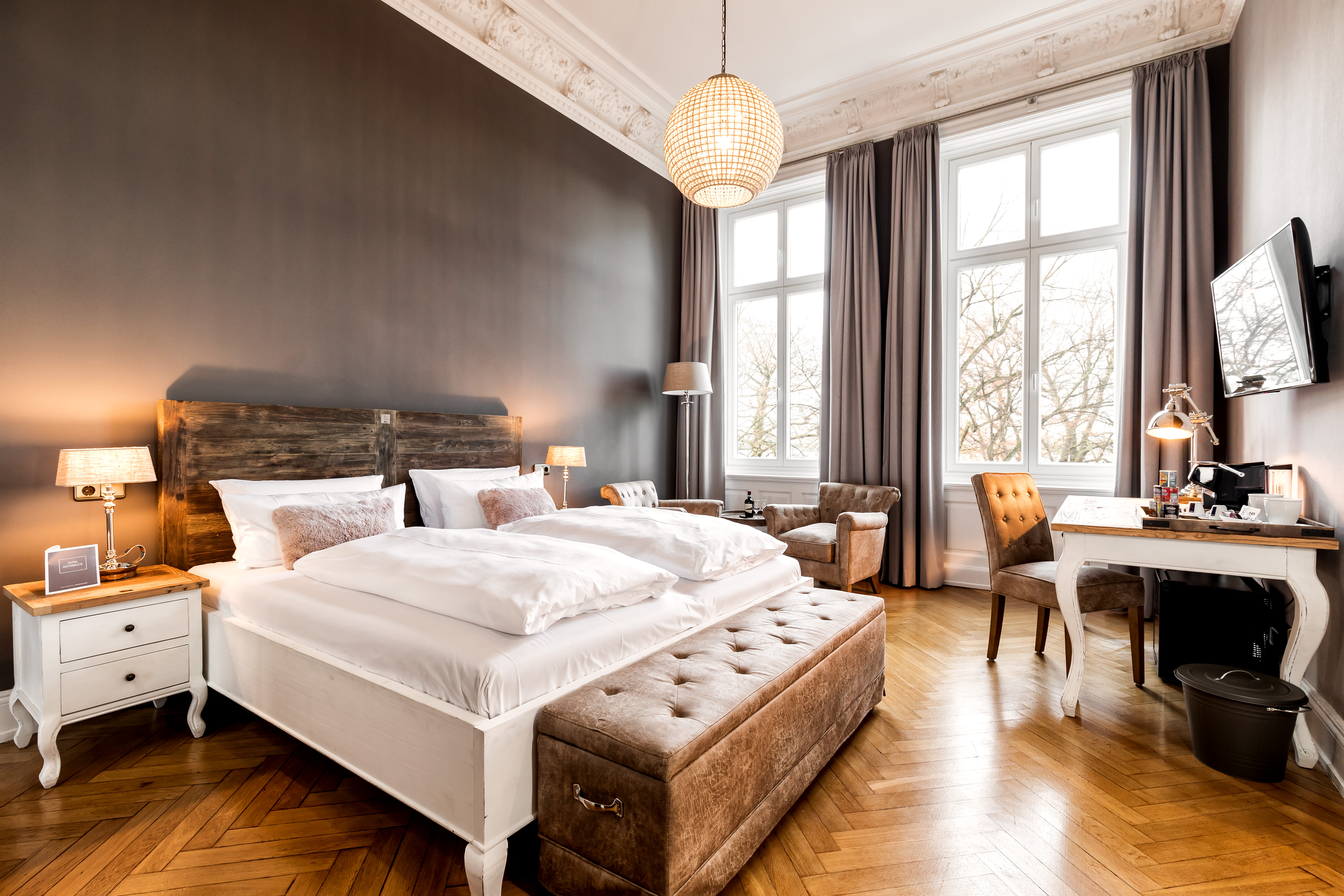 Im Doppelzimmer Deluxe zur Alster erwartet Sie ein gemütliches Doppelbett, zwei Sessel, ein großer Schreibtisch und ein Badezimmer mit Dusche oder Badewanne. Die Zimmer verfügen teilweise über einen Balkon und historischen Kachelofen. Die Größe der Zimmer liegt zwischen 26 und 35qm. Sie befinden sich im Hochparterre als auch im Obergeschoss.